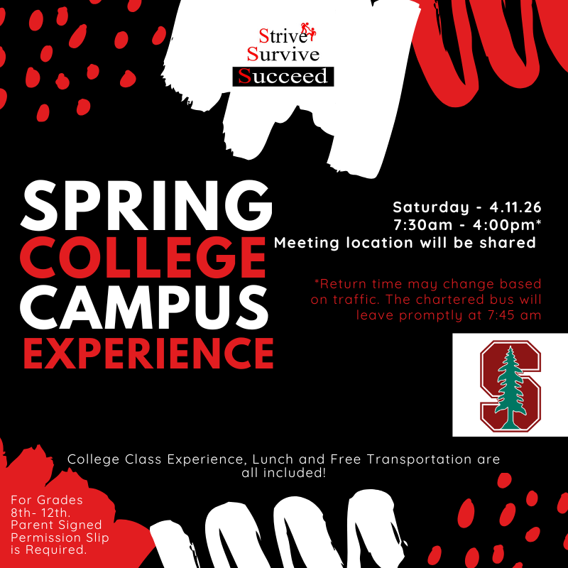 Join Strive Survive Succeed for our college campus experience to Stanford University!